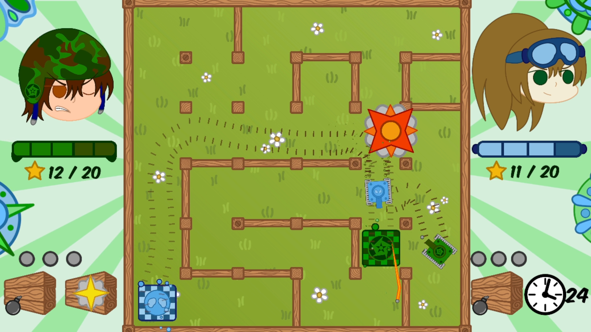 Racing Tanks is a short local multiplayer game in which you fight against your friends in